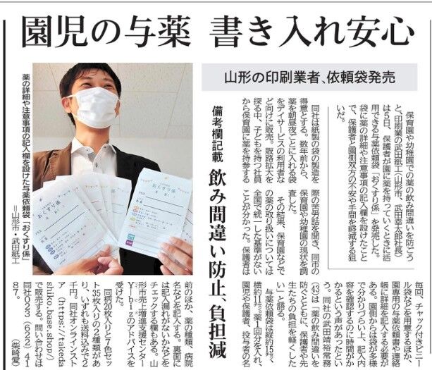 実際に武田紙工さんでは複数の園の与薬依頼書を入手し、