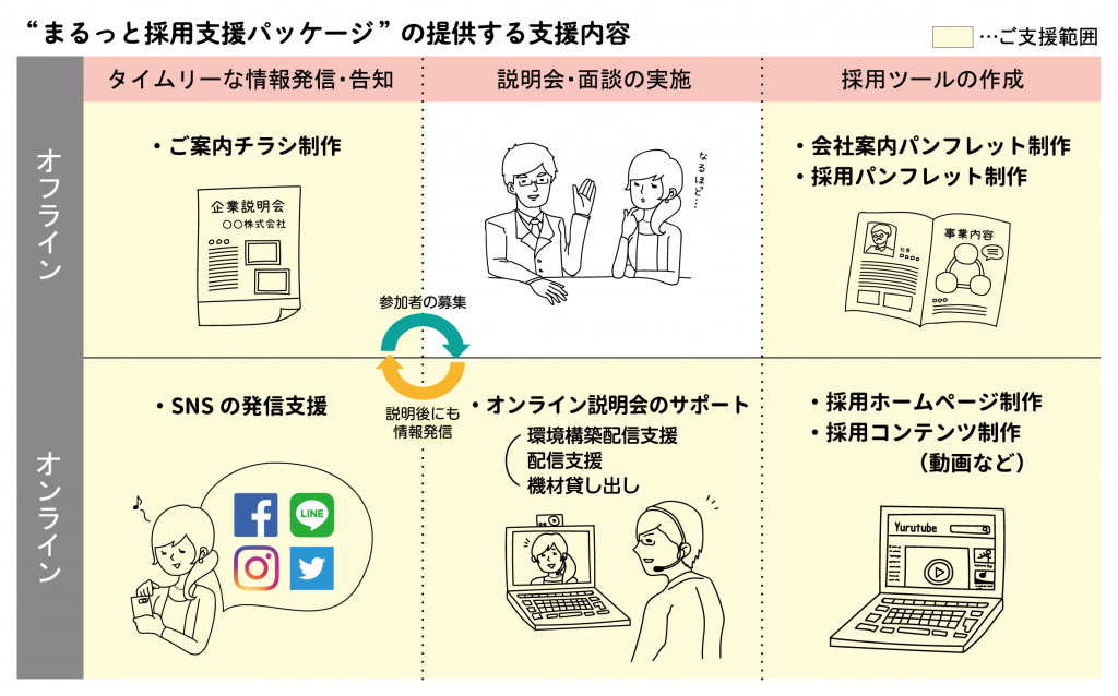 オンラインもオフラインも“まるっと”まとめて支援します!という内容。