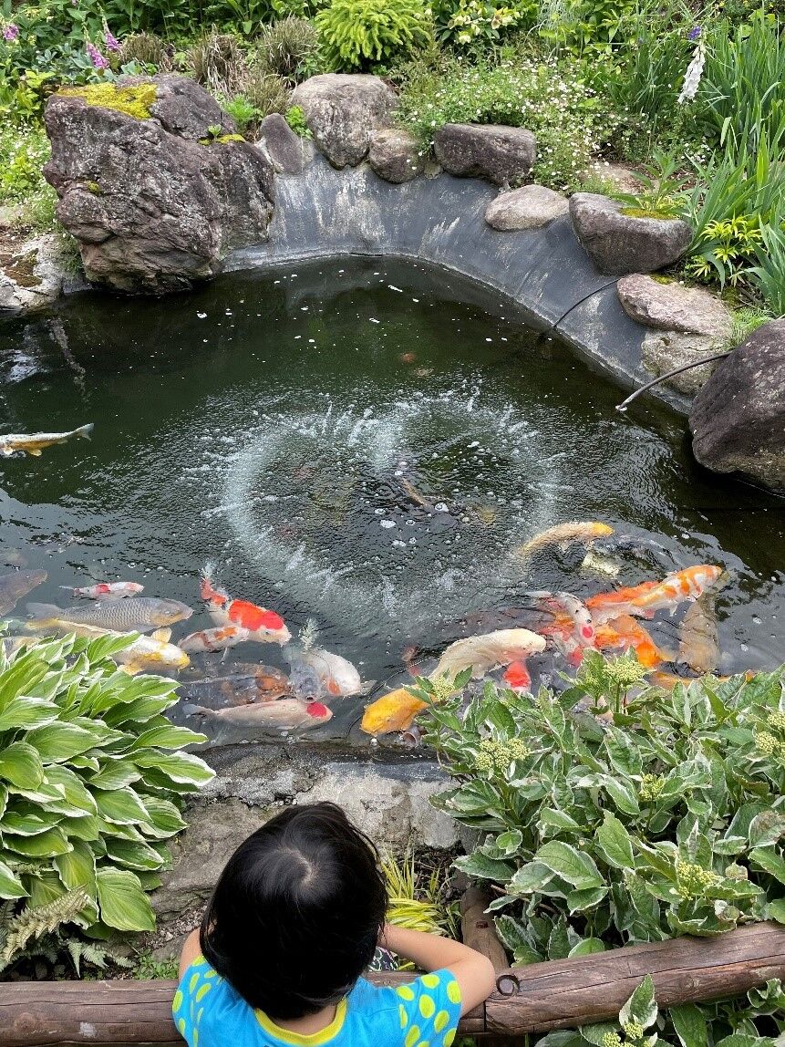 幸運を呼ぶ?ハートマークが浮かぶ池。